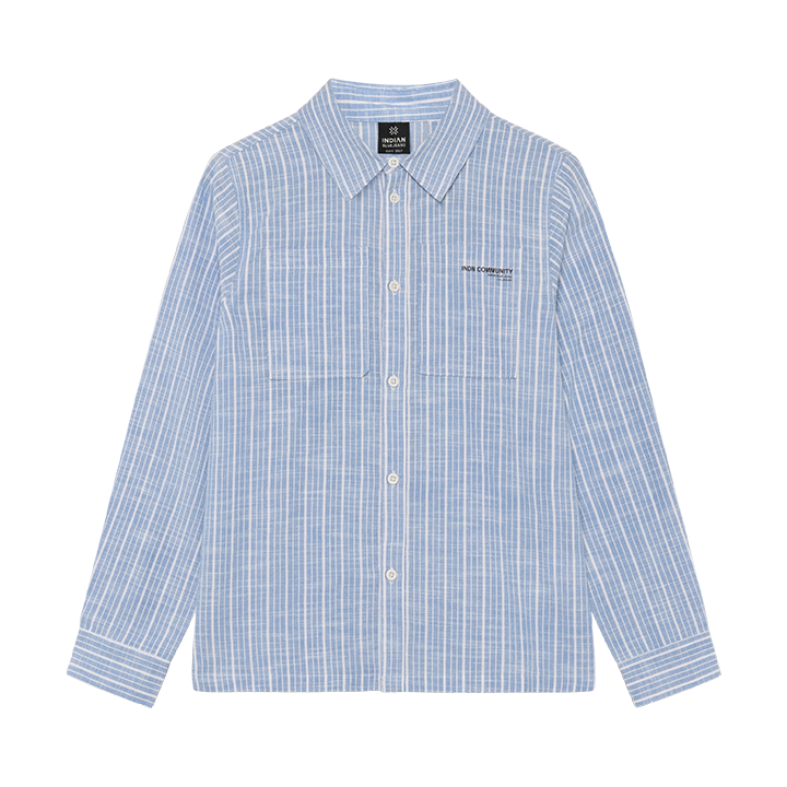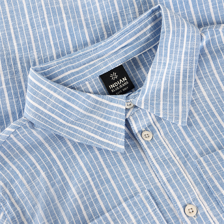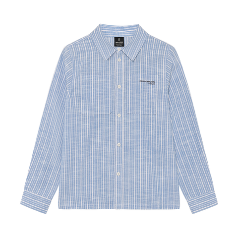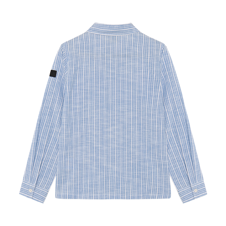 This Bel Air Blue long-sleeve linen shirt brings stripes and style with a polo collar, button-up closure, and two chest pockets with buttoned sleeves. Pair it with jeans, chinos, or shorts for a smart-casual look that works for school, play, or weekend outings.