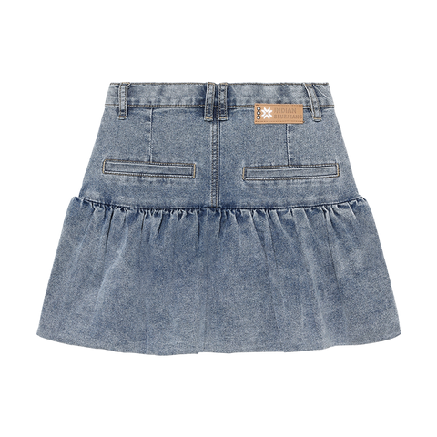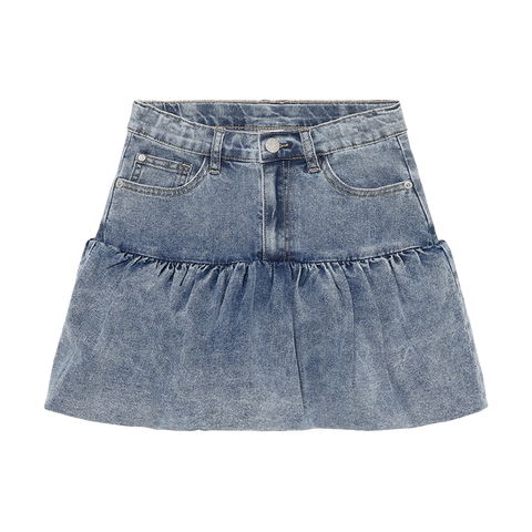 This balloon denim skirt in Used Light Denim adds a playful shape to everyday styling. The voluminous silhouette gives the skirt a modern edge, while the light denim wash keeps the look casual and easy. 5-pocket jeans-style top, button/zip closure at center front, and adjustable waistband provide practicality and comfort, making it perfect for school or casual outings.