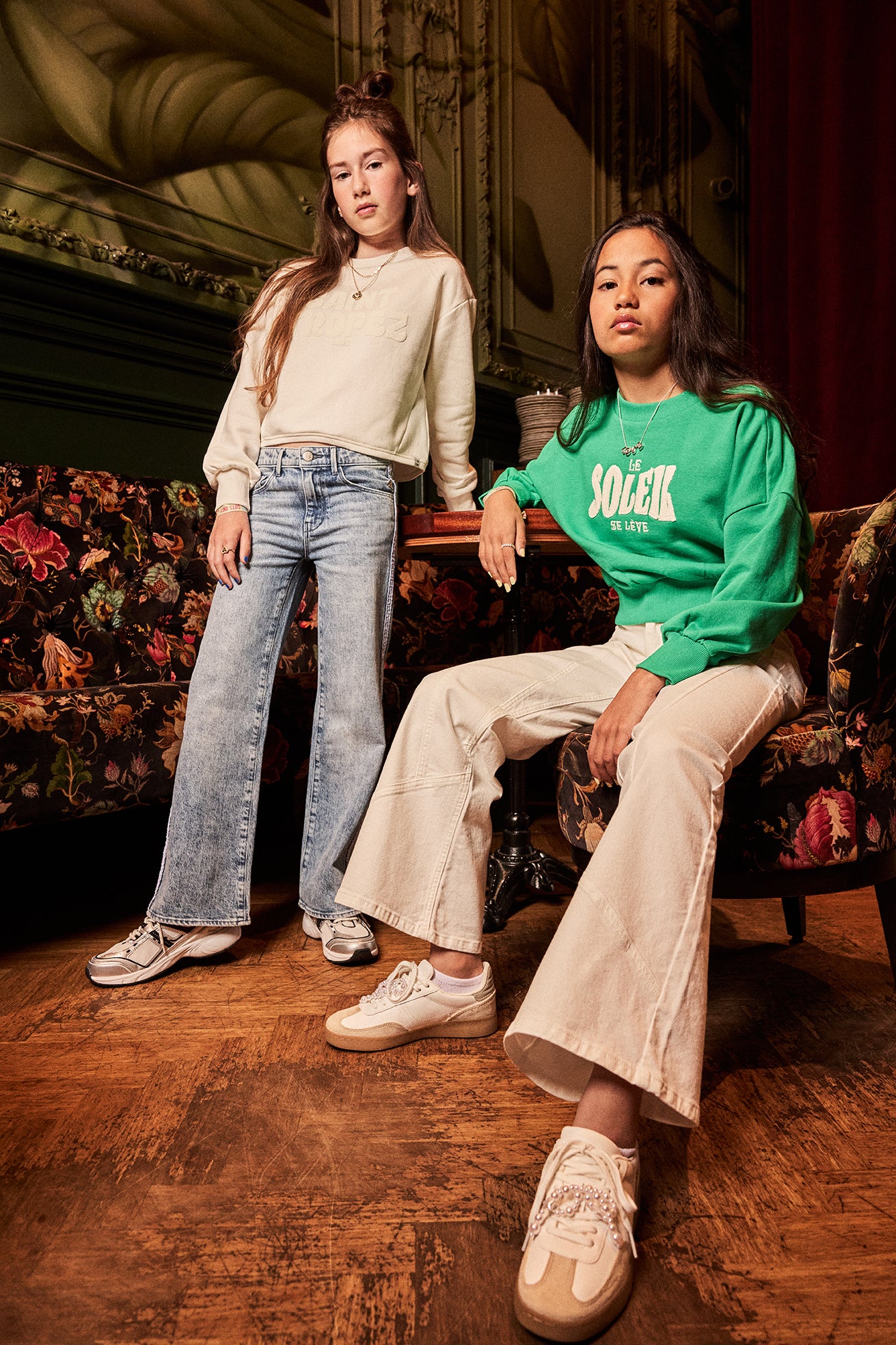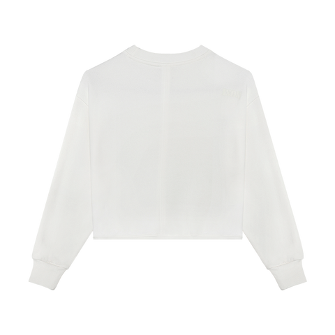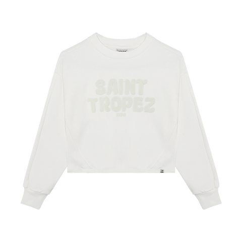 Cropped cool in Cloud. This sweater with a stylish Saint Tropez chestprint for effortless street style.