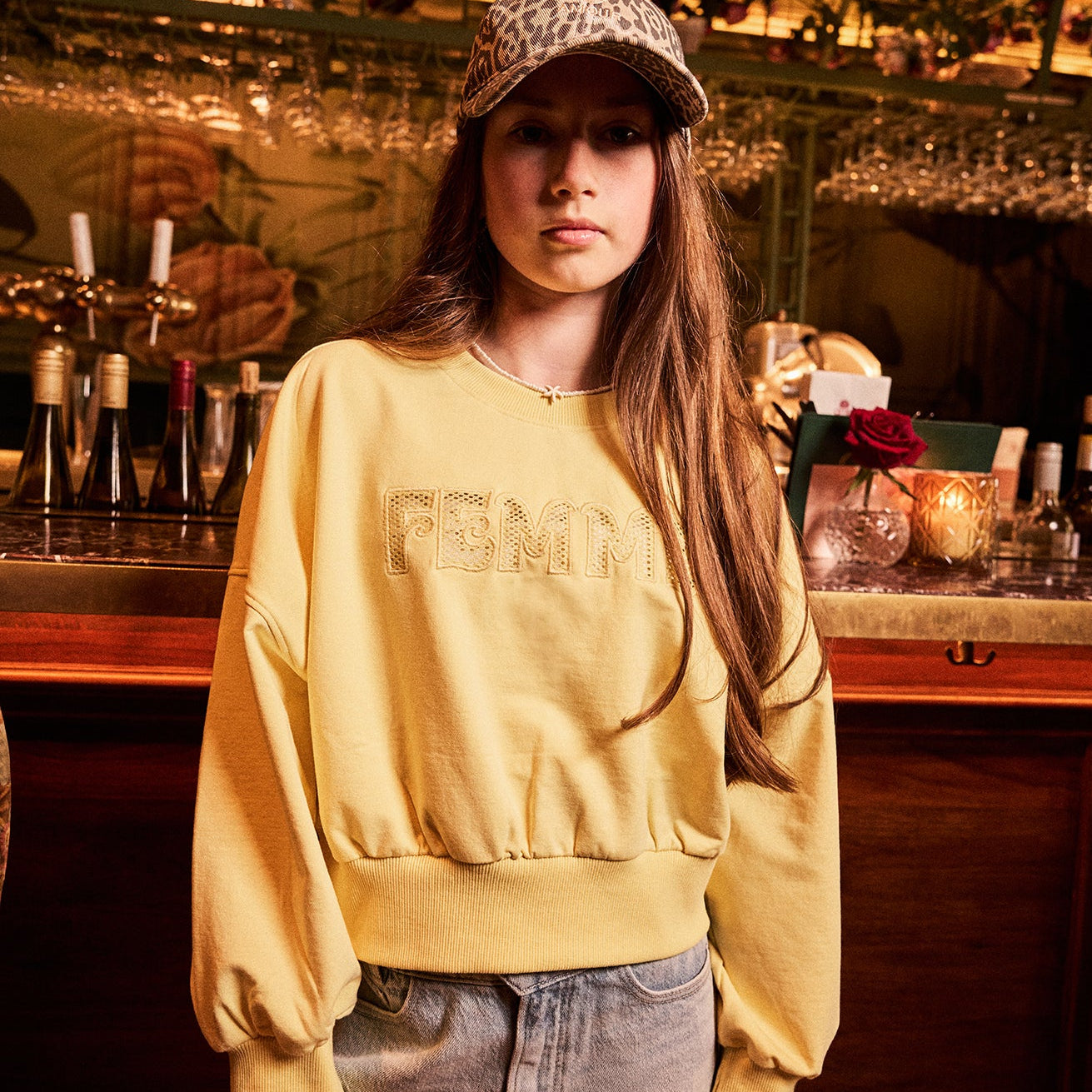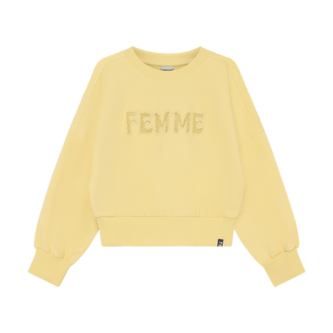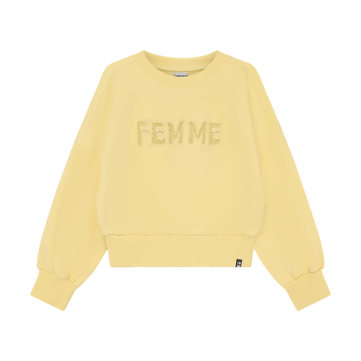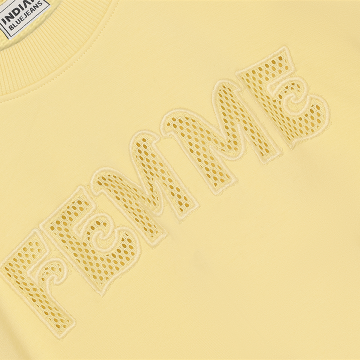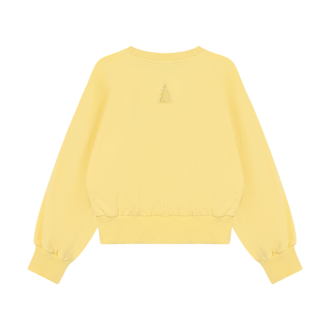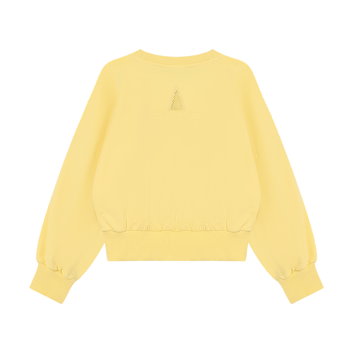 Cool and lightweight, this Pale Banana back mesh sweater features oversized shoulders and bold mesh details. Triangle mesh accents on the sleeves and a large matching mesh applique on the back create a standout design, while the relaxed fit allows easy movement for casual school days, weekend play, or layering over simple tops.