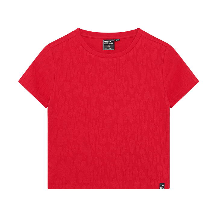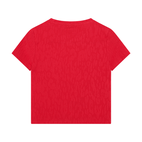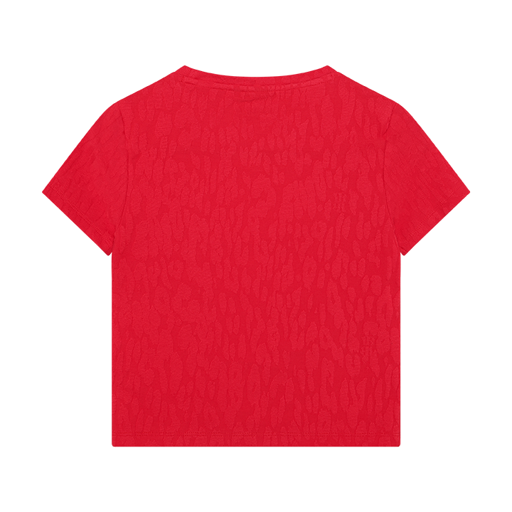 Add a wild twist with the Cropped Top in color Lollipop. This short-sleeved top in a soft leopard jacquard is playful and fun. Style it with skirts, shorts, or jeans for a cute everyday look.