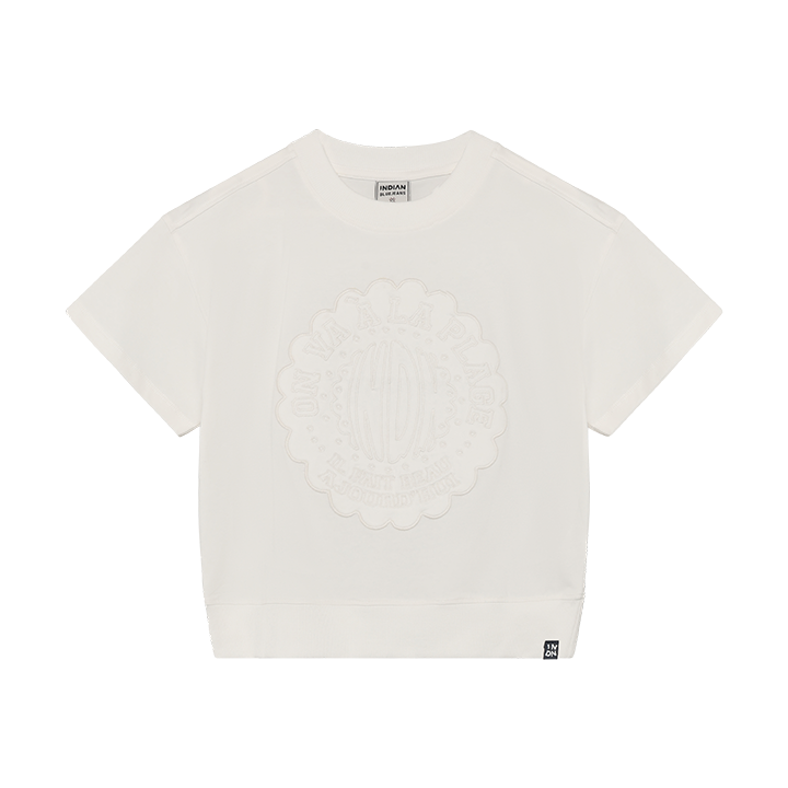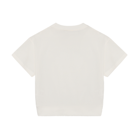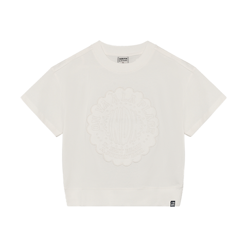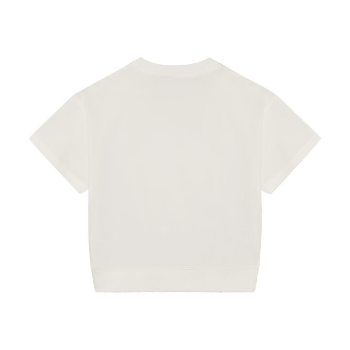 Soft and stylish, the Embroidery T-shirt has short sleeves and a ribbed waistband for a gentle shape. A large front applique adds a fun, playful touch. Style it with jeans, skirts, or shorts for a cute everyday outfit.