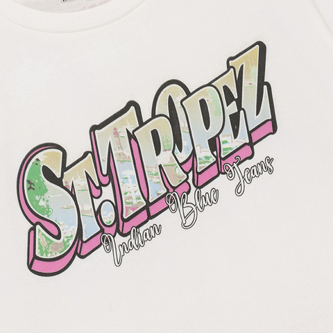 Catch the vibe in Cloud – this tee features a cool St. Tropez chestprint for effortless summer style.