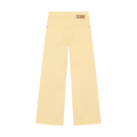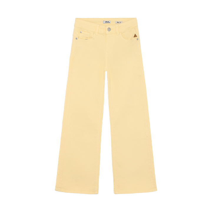 Designed to stand out, these wide fit jeans in color Pale Banana feature a bold, fashion-forward look. The relaxed fit adds a casual edge, while the color brings extra attitude to any outfit. Fitted on the hip, wide at knee and ankle, with button/zip closure and adjustable waistband for comfort.