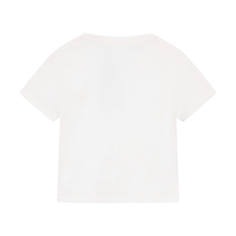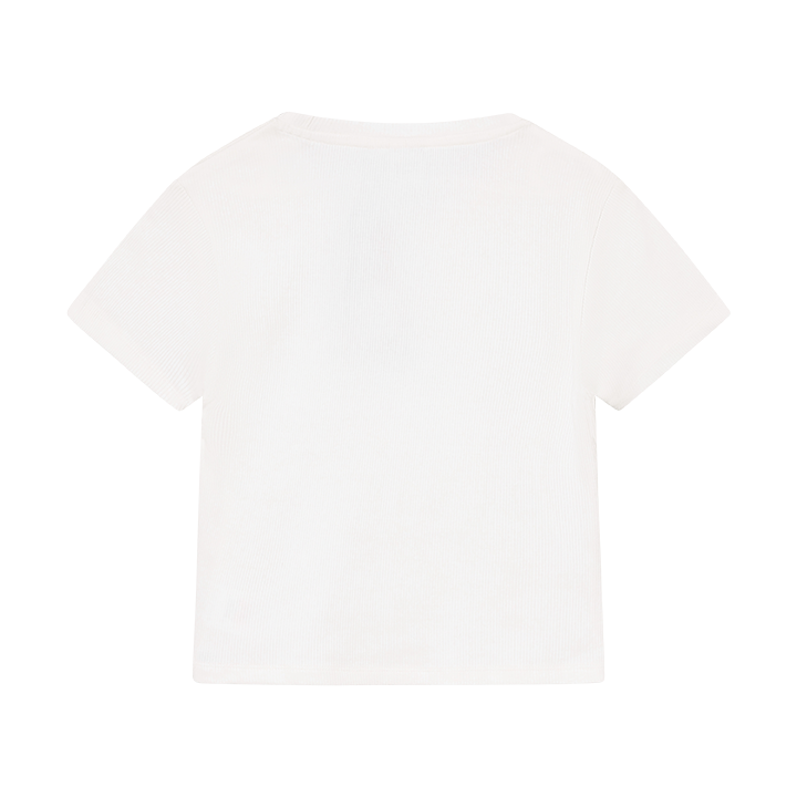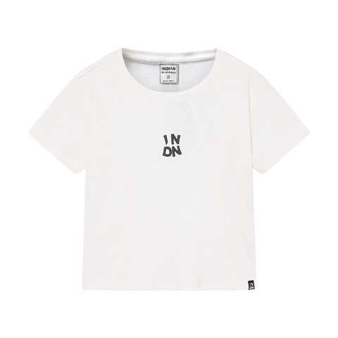 Keep it clean and cool with this fitted cropped top in Cloud. Diagonal topstitching on the front adds a subtle design detail, while the small embroidered INDN logo in the center front keeps it minimalist. The fitted silhouette makes it easy to style with skirts, wide pants, or shorts. A simple everyday top that works well for school, weekends, or casual outings.
