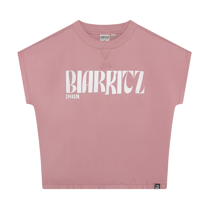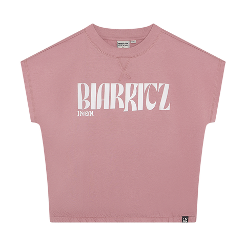 Stay cool in this Lilas wide cropped T-shirt with a bold Biarritz front print. The relaxed fit allows for easy movement, while wide shoulders, sleeveless design, and elastic waistband ensure comfort and a flattering fit, complemented by a small back print. Pair with shorts, skirts, or jeans for casual days at school or weekend adventures.